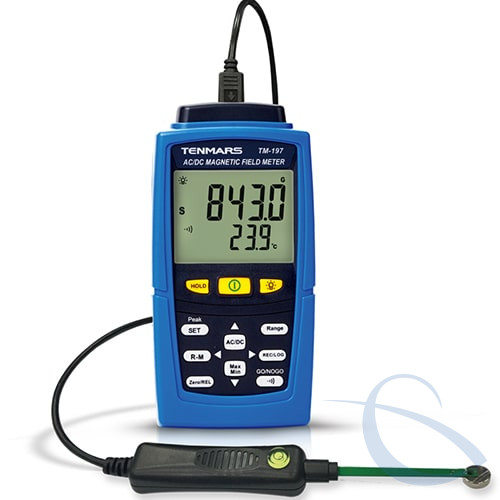 - Вимірювання магнітного поля, створюваного постійним струмом (постійний струм, з відображенням N/S магнітної полярності), або змінним струмом (змінний струм 40-500 Гц);